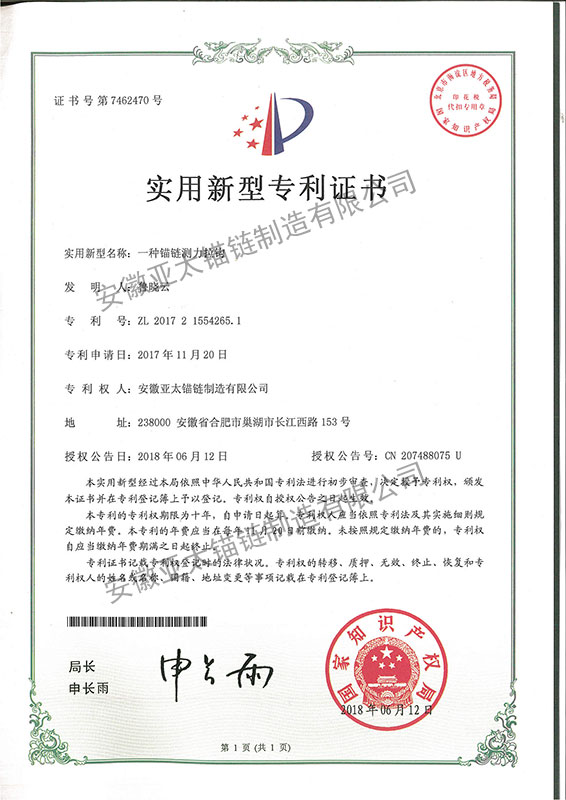 • 一種錨鏈測力拉鉤